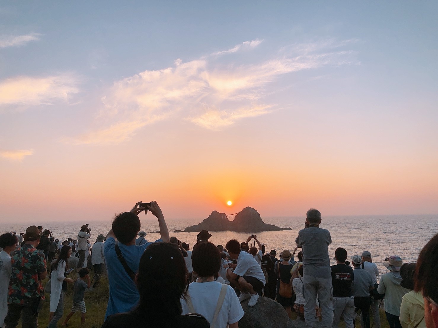 この日が丁度、夫婦岩の間に夕日が落ちるというなんともロマンチックな日だったそうで。。。